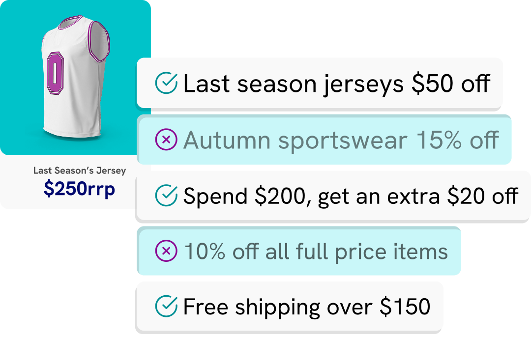 Choose who qualifies, when, and how. From cart value to product attributes, you decide.